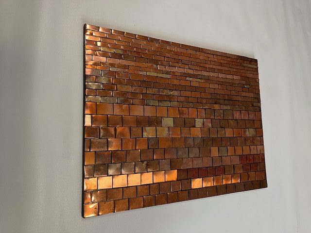 NOTHING CAN MAKE BETTER DESIGN THAN NATURE. FOR SALE BEAUTIFUL PANEL ABSTRACT COPPER SCULPTURE-PICTURE. THIS IS REAL THICK 24 GH (1 POUND PER SQ.FT)COPPER. ALL COLORS ARE NATURAL. NO PAINT ADDED. I COVERED IT WITH CLEAR LACQUER. DIMENSIONS PANEL IS 20’x27″. BACK SIDE IS 1/2″ PLYWOOD. READY TO BE INSTALLED HORIZONTALLY OR VERTICALLY.. READY TO GO ON YOUR WALL. YOU WILL GET EXACTLY WHAT YOU SEE