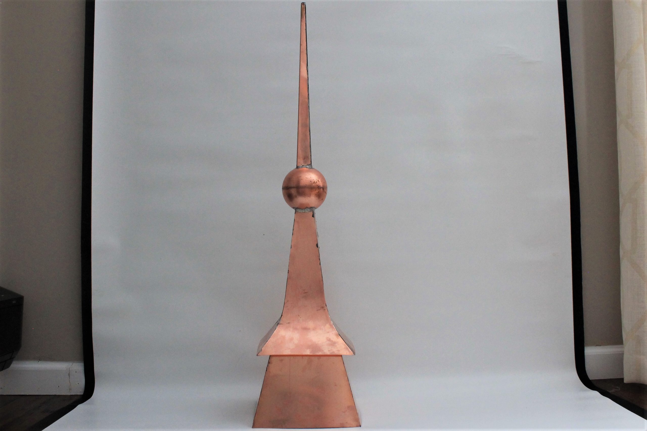 This beautiful custom-made finial is made of 16 oz copper. The copper is not polished.